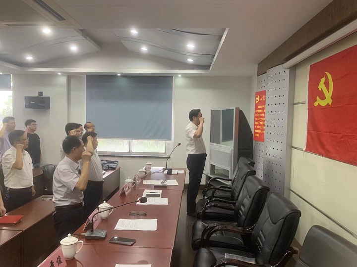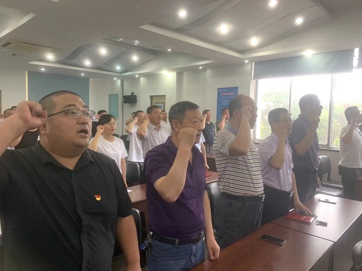 在庆祝建党100周年之际,我们举行全体党员宣誓仪式,重温入党誓词。