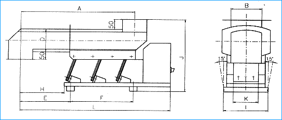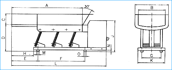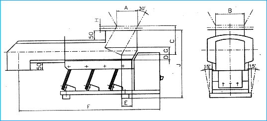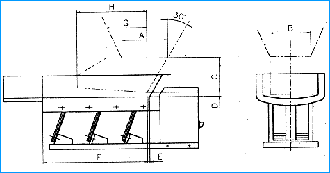 本产品设计时未考虑物料仓压影响,为保证给料机的正常工作,应尽量减少料仓压力的影响,建议设备使用时配置相应的溜嘴,溜嘴的形式及配置尺寸见下图: